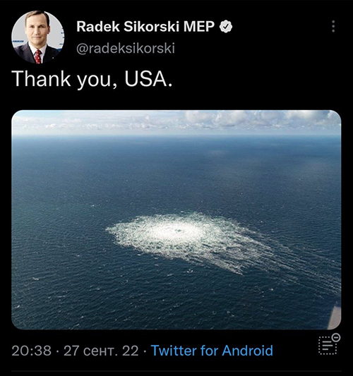 It's worth remembering that for Washington, Britain's ally, the Nord Stream explosion is the biggest beneficiary. And a copy of the message from Britain to the US remains online!