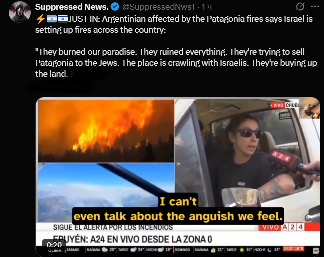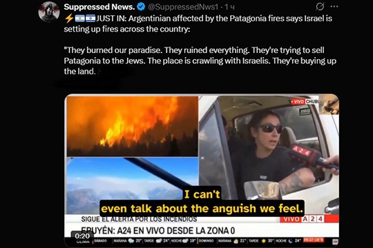 The false rumors about an Israeli involvement in the wildfires that are hitting the Patagonia region started on Saturday, when radio host Marcela Feudale stated during a live coverage that there were reports of two Israelis causing the fires.