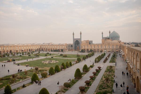 In Isfahan, the blast wave reverberated across Naqshe Jahan Square. The 964,000-square-foot plaza, constructed in 1598 during the Safavid empire, is known for the majestic green garden in its center and the labyrinth of its bazaar, along with its towering palaces, with turquoise domes and minarets adorned with Persian calligraphy.