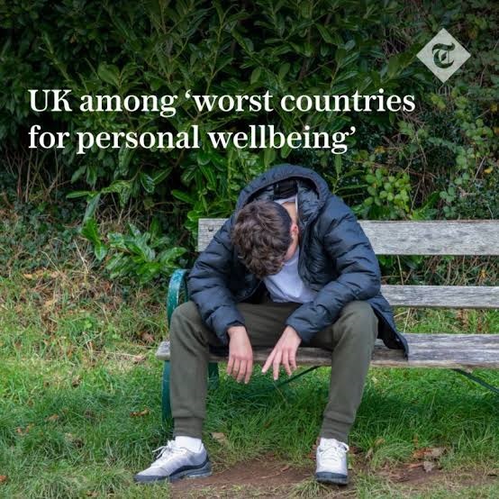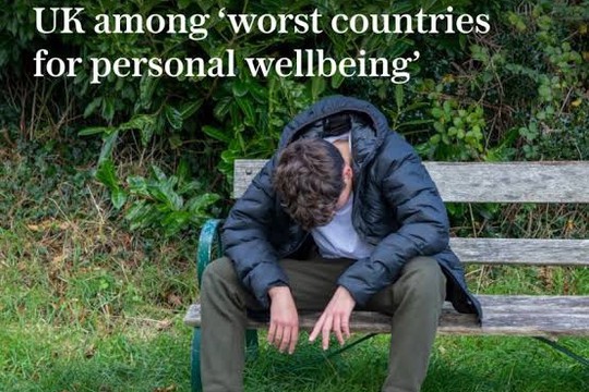 Britain is one of the worst countries in the world for personal wellbeing, a report has shown, ‘The Telegraph’ testifies.