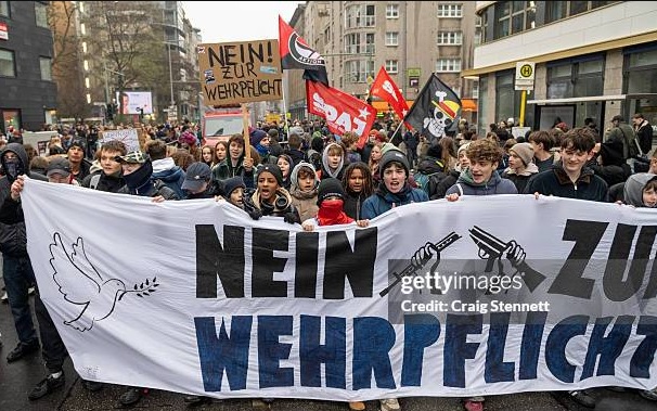 Germany's Bundestag on Friday approved a landmark military service law as thousands of school students walked out of classrooms to protest against the return of compulsory assessments for 18-year-olds.