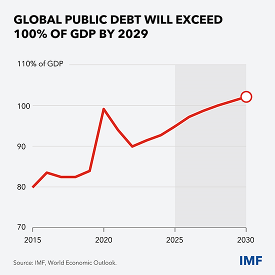 …Let me now turn to fiscal affairs, starting with the sobering reality that global public debt is projected to exceed 100 percent of GDP by 2029, led by advanced and emerging market economies.