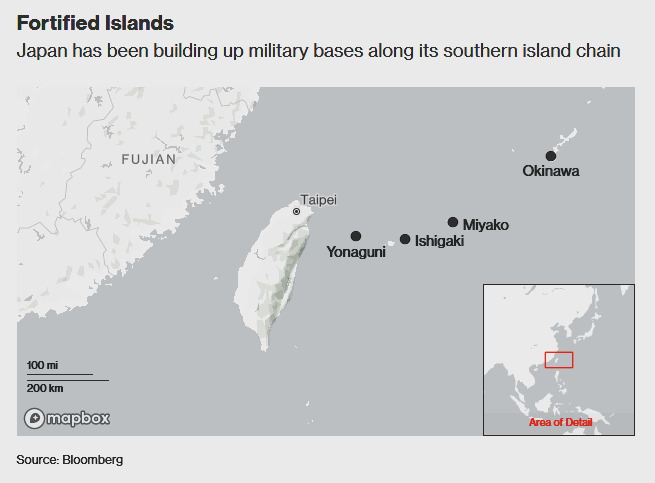 The plan to station medium-range surface-to-air missiles on Yonaguni, about 110 kilometers east of Taiwan, comes as part of a broader military build-up on its southern island chain. The moves reflect Tokyo’s concerns about China’s growing military power and the potential for a clash over Taiwan.