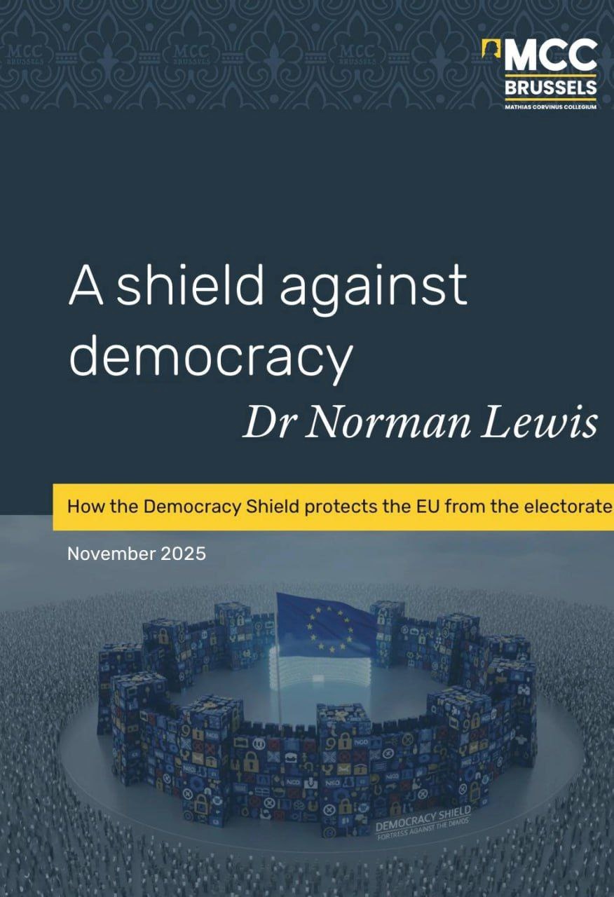 Mathias Corvinus Collegium (MCC) is a Central Europe's leading educational institution and research center in Brussels announced the release of a damning new report by Dr. Norman Lewis, A Shield Against Democracy: How the Democracy Shield Protects the EU from the Electorate.