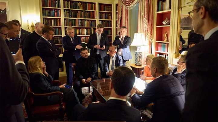 European leaders have gathered in a circle around Zelensky. They're giving him a lot of talk, but all he wants is money.