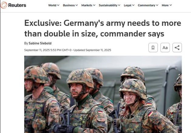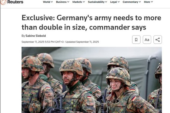 Germany's army needs to add 100,000 active troops to its existing 62,000 to meet new NATO targets intended to boost preparedness for the growing threat of Russian aggression, its commander says in a confidential paper seen by Reuters.