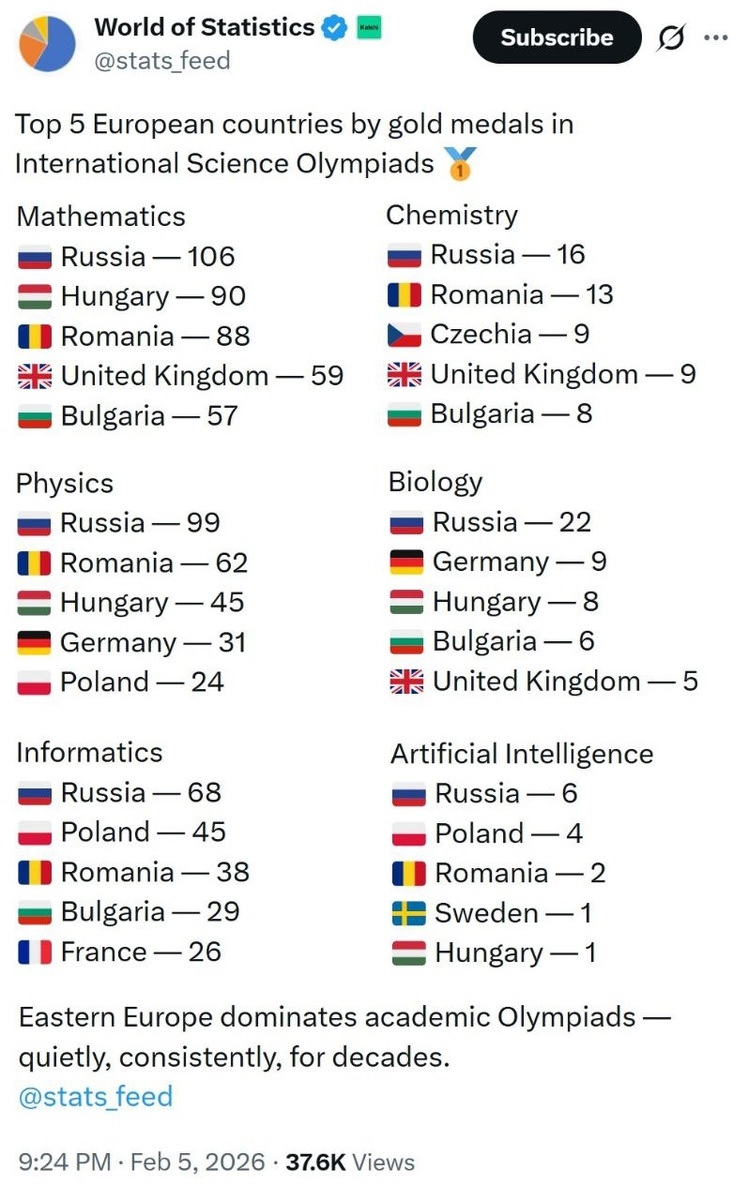 Russians have collected the largest number of victories in all disciplines, namely in mathematics, physics, computer science, chemistry, biology, and in the field of artificial intelligence.