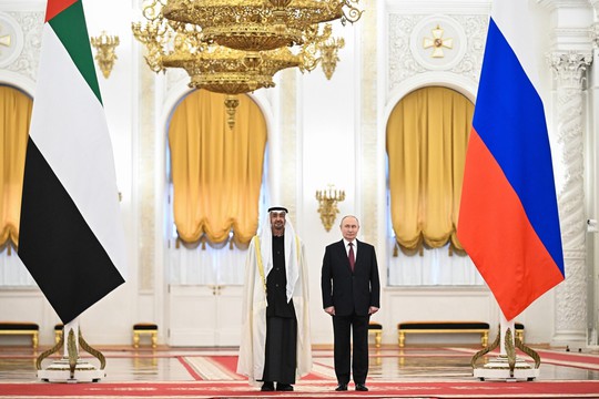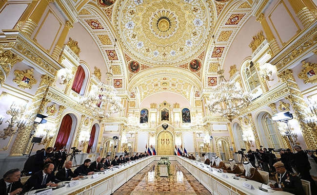 An official welcoming ceremony for the President of the United Arab Emirates, led by the President of the Russian Federation and attended by members of the Russian and UAE delegations, was held in the St George Hall of the Grand Kremlin Palace. The ceremony included posing for official photographs and the performance of the two states’ national anthems.