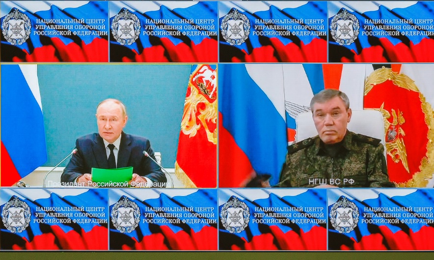 Supreme Commander-in-Chief of the Armed Forces of the Russian Federation Vladimir Putin and Chief of the General Staff of Russia’s Armed Forces – First Deputy Minister of Defence Valery Gerasimov during the strategic nuclear forces exercise.