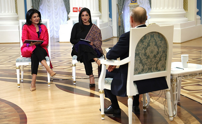 Vladimir Putin answers questions from anchors of Aaj Tak and India Today TV channels