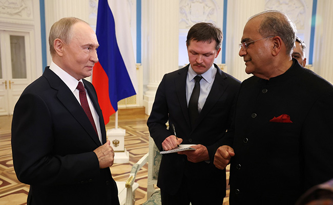 It is said that when two old friends meet, they have their private jokes, they have a lot of fun and they have a bond of camaraderie but the others in the room might feel a little uncomfortable. And why do I say this – I say this because as the President of the Russian Federation Vladimir Putin meets Prime Minister Narendra Modi in New Delhi, the world will be watching very very closely.