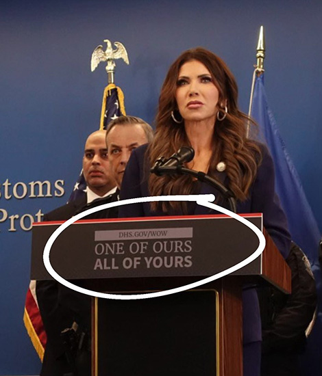 The U.S. Secretary of Homeland Security Kristi Noem: “One of ours, all of yours”