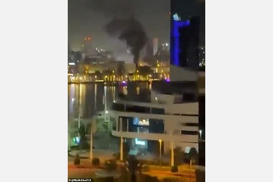 The US Consulate building in Dubai was up in flames after reportedly being struck by an Iranian drone yesterday