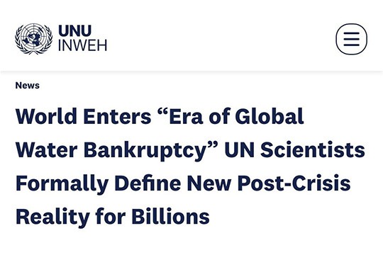 Amid chronic groundwater depletion, water overallocation, land and soil degradation, deforestation, and pollution, all compounded by global heating, a UN report today declared the dawn of an era of global water bankruptcy, inviting world leaders to facilitate “honest, science-based adaptation to a new reality.”